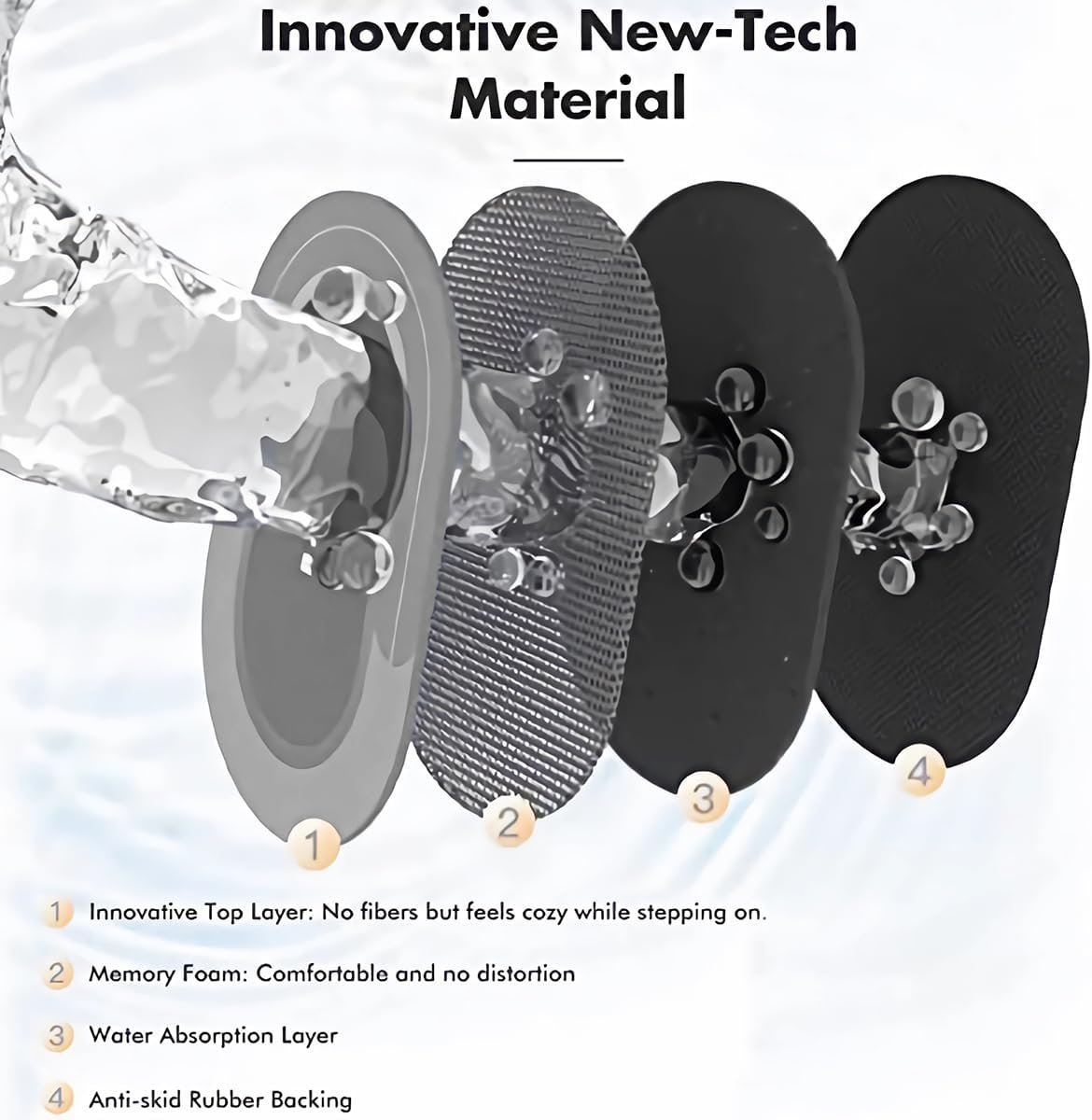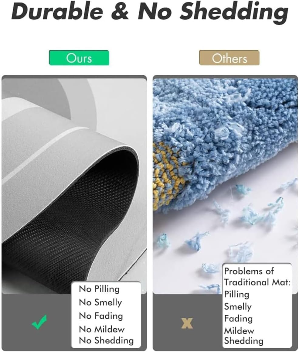- Material: Super absorbent floor mats is made of new velvet surface and multi layer compsite material,which can quickly absorb water in a short time and keep the floor clean and dry,druable and no shedding anno microfibers also improve your living enviroment.