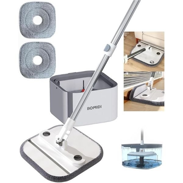 • ✅【Smart Water-Separation for Efficient Cleaning】BOMIDI spin mop has a smart water-sewage separation. Keeps clean and dirty water apart while cleaning, preventing recontamination. Each wipe uses fresh water, boosting efficiency and hygiene. It’s like a mini purifier on the mop, perfect for a thorough clean.